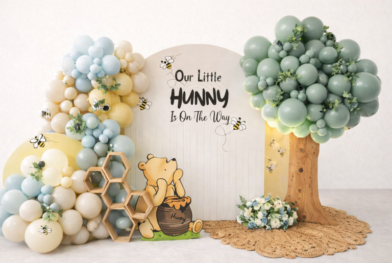 Retrouvez cette gamme comprenant : deux panneaux, des ballons gonflés, des nids d’abeilles, Winnie l’Ourson, les fleurs et les abeilles. Il vous suffira simplement d’assembler les différents éléments. Une démonstration vous sera présentée lors de la récupération de la location. La main-d’œuvre de montage n’est pas comprise, mais peut être proposée sur demande si nécessaire.