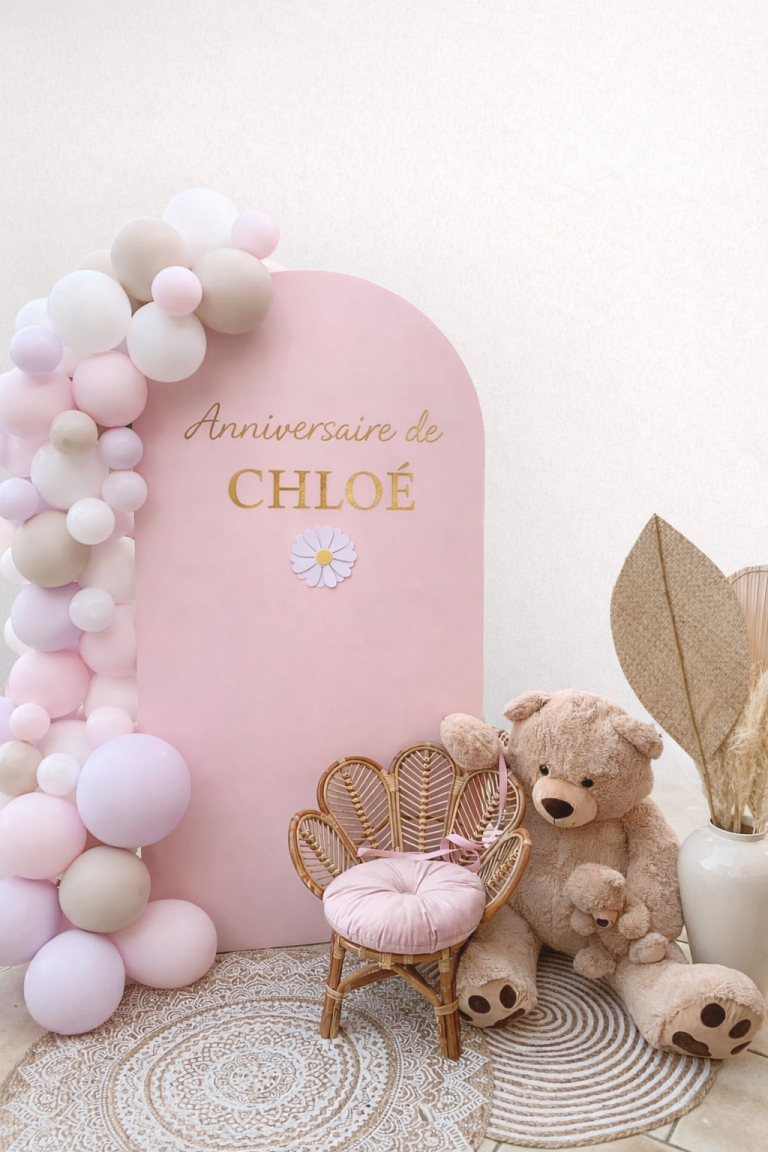 Retrouvez cette gamme comprenant : un panneau, des ballons gonflés, la petite chaise et un ours. Il vous suffira simplement d’assembler les différents éléments. Une démonstration vous sera présentée lors de la récupération de la location. La main-d’œuvre de montage n’est pas comprise, mais peut être proposée sur demande si nécessaire.