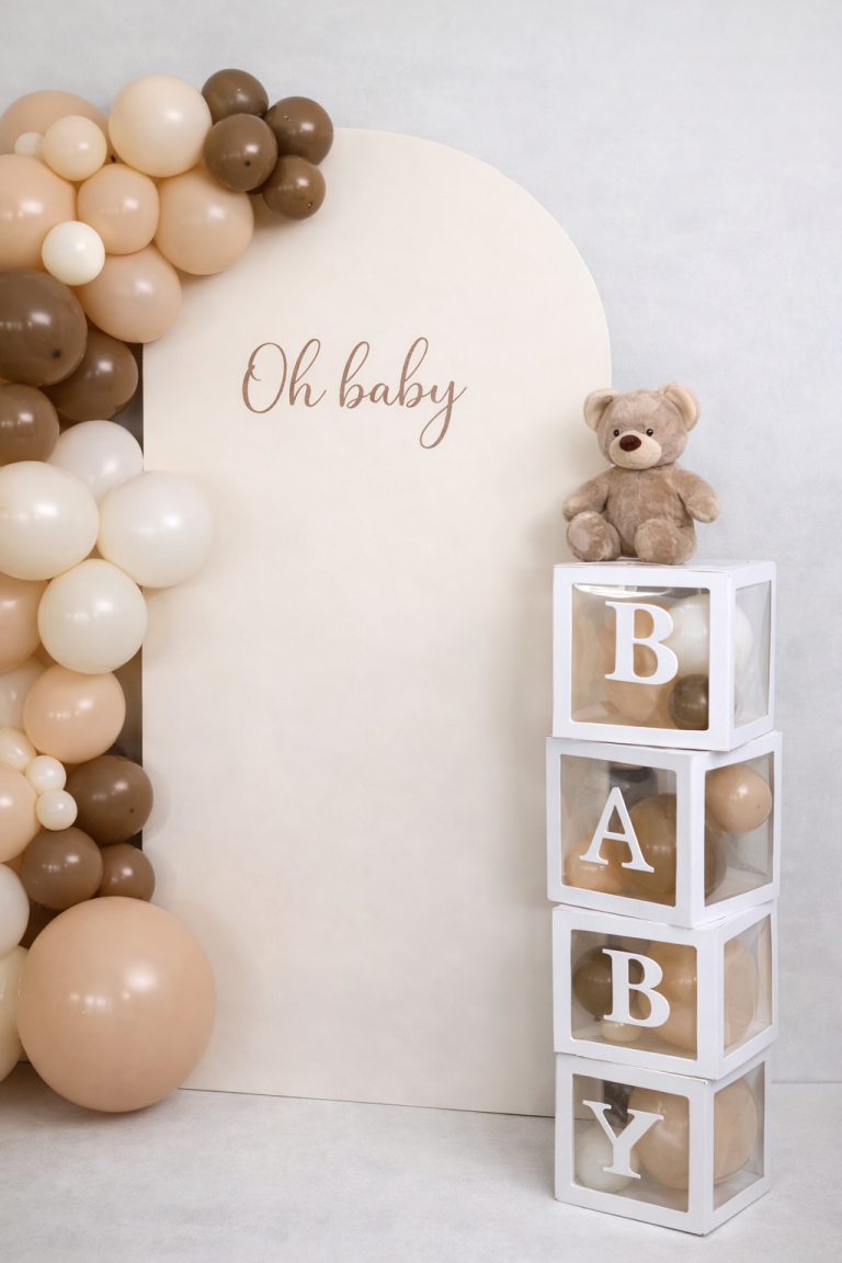 Retrouvez cette gamme comprenant : un panneau, des ballons gonflés, un ours en peluche, les cubes "Baby". Il vous suffira simplement d’assembler les différents éléments. Une démonstration vous sera présentée lors de la récupération de la location. La main-d’œuvre de montage n’est pas comprise, mais peut être proposée sur demande si besoin.