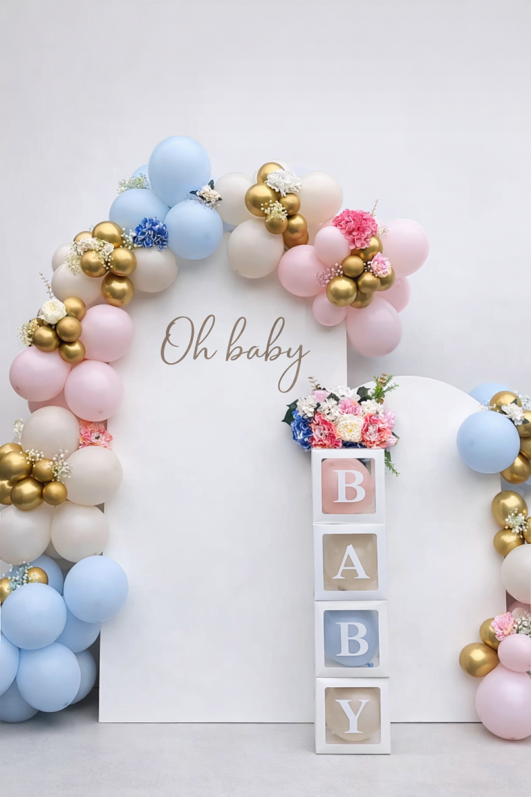 Retrouvez cette gamme comprenant : deux panneaux, des ballons gonflés, des fleurs, les cubes "baby". Il vous suffira simplement d’assembler les différents éléments. Une démonstration vous sera présentée lors de la récupération de la location. La main-d’œuvre de montage n’est pas comprise, mais peut être proposée sur demande si besoin.